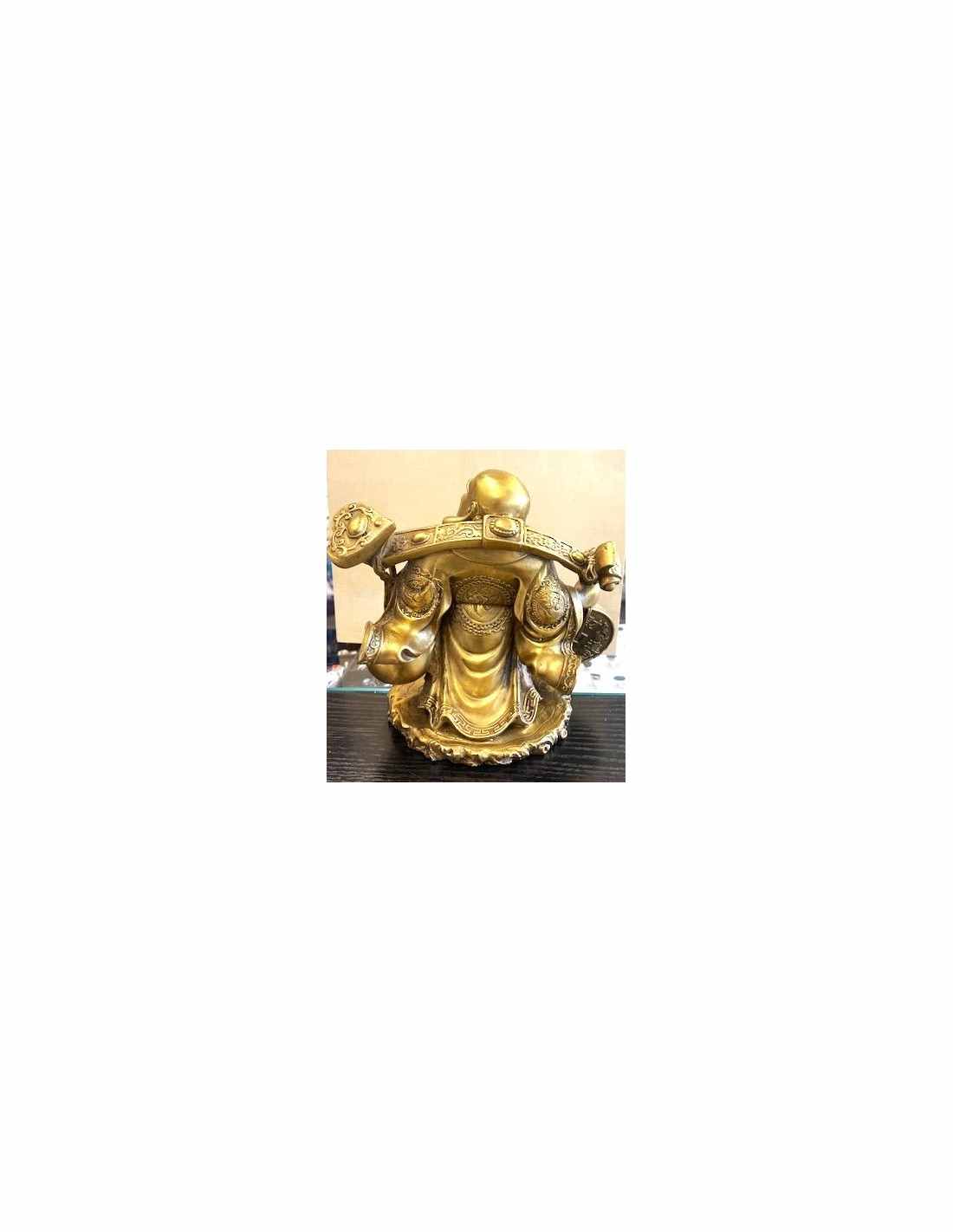 Découvrez cette superbe statue de Bouddha de l'Abondance, également connu sous le nom de Bouddha Rieur (Hotei ou Budai). Cette sculpture est réalisée en laiton massif et recouverte d'une finition dorée brillante, capturant l'énergie positive et la joie qu'elle est censée apporter.