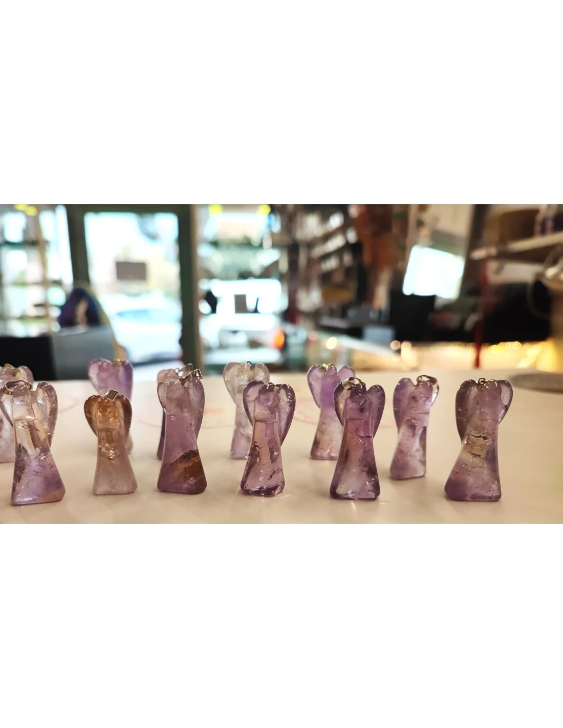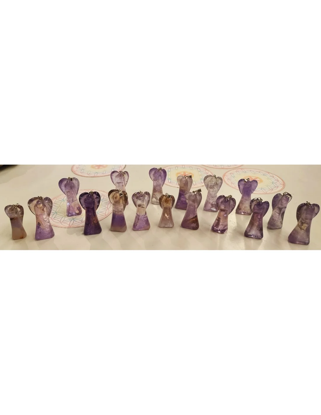 - Ange en améthyste. Provenant du Brésil. Hauteur de 3 à 4 cm, de 9 à 13g. Prix unidaire, un ange. Symbole de protection et harmonie pour la maison