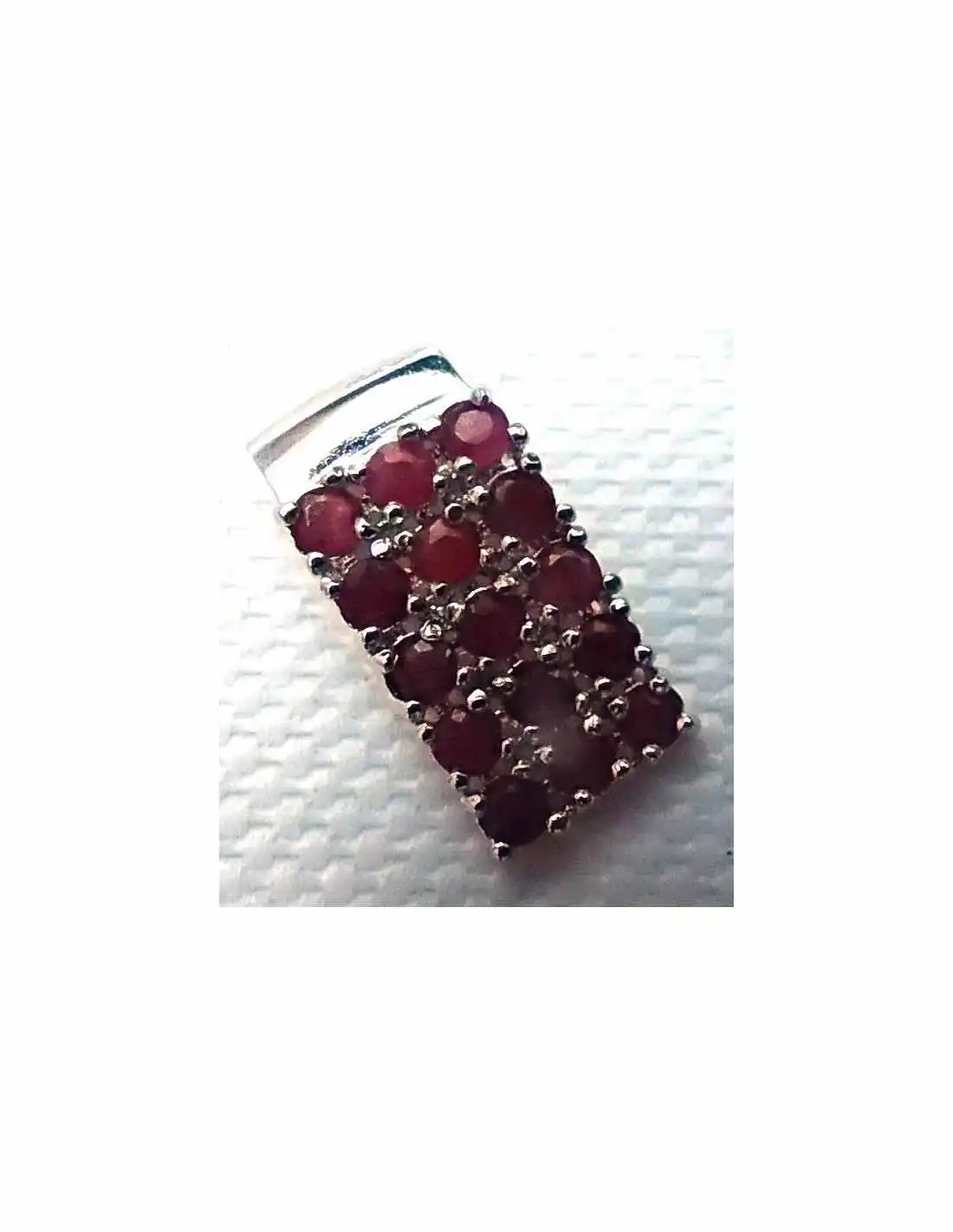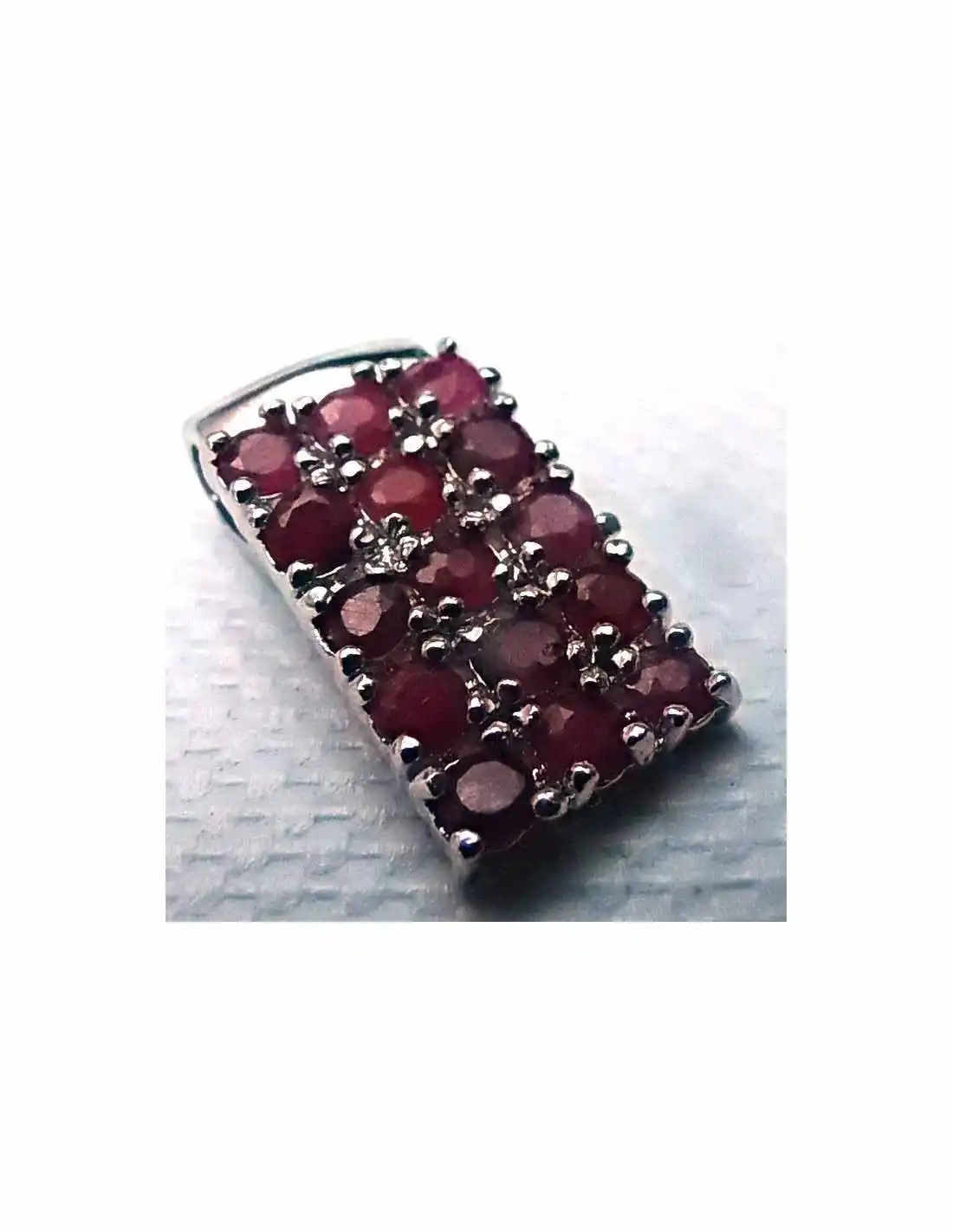 Parure en Rubis & Argent Massif - Pendentif, Boucles & Bague
