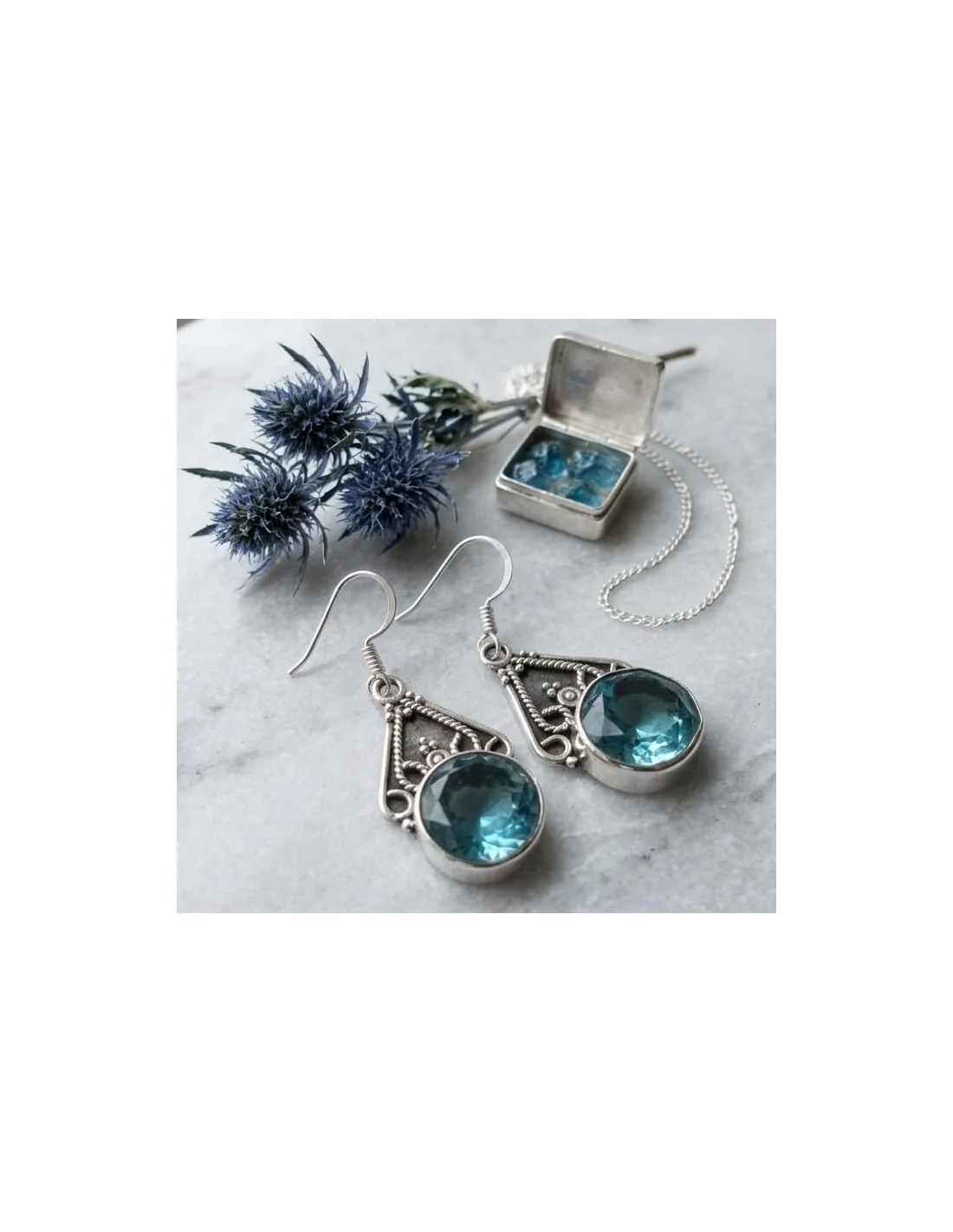 Boucles d'Oreilles en Topaze Bleue Naturelle et Argent 925