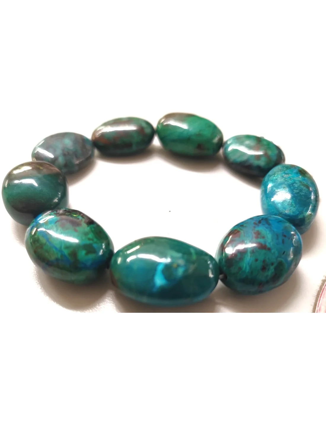 Caractéristique Détail Nom de la Pierre Quattro Quantum (aussi appelé Quartz Quantum, Quatro Quartz) Origine Namibie Composition Shartuckite, Dioptase, Malachite, Chrysocolle, Quartz Fumé Longueur du Bracelet 17 cm Dimensions des Pierres Ovale : de 1,7 a 2 cm cm (17 à 20 mm) Poids 37g Type de Produit Bracelet en pierres naturelles (perles ovales et rectangulaires) 🌟 Bienfaits Énergétiques et Spirituels (Lithothérapie)