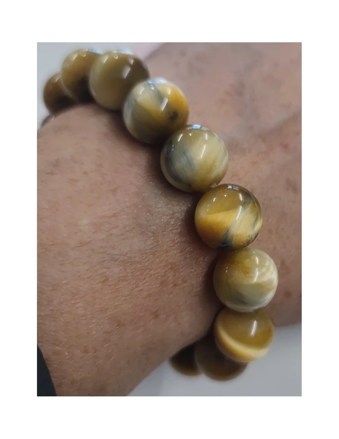- Bracelet "Golden Eye" en Œil d’Or et Œil de Chat 12mm. – Protection & Intuition