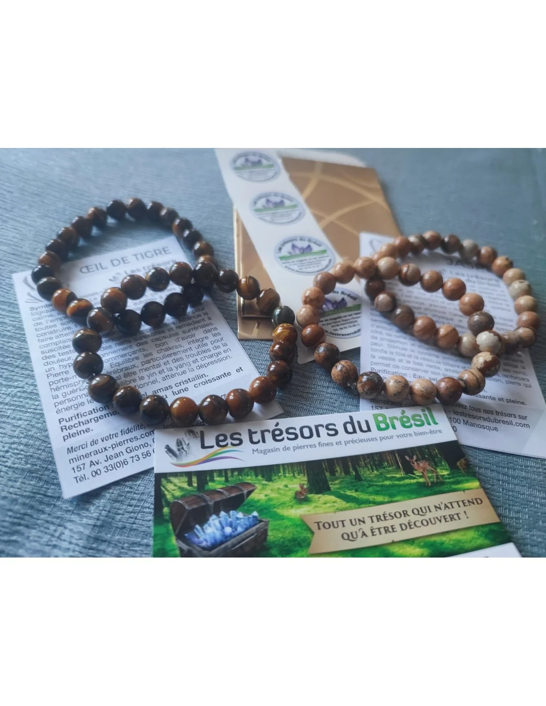 Un Symbole Ancestral de Fidélité. Bracelet homme et un bracelet femme. Pierres 6mm. Accompagne papiers cadeaux, vertus des pierres, etiquettes Les trésors du Brésil, Avec certificats d'authenticité.
