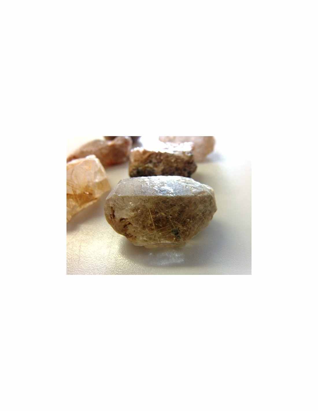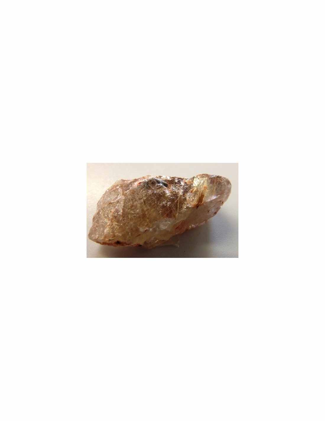 Quartz aux rutiles de titane brut. Longueur de 2 à 2,5cm, largeur de 1 à 2cm - 10 à 20g Permet le changement, favorise l’évolution mental pour pouvoir développer de nouveaux principes.
