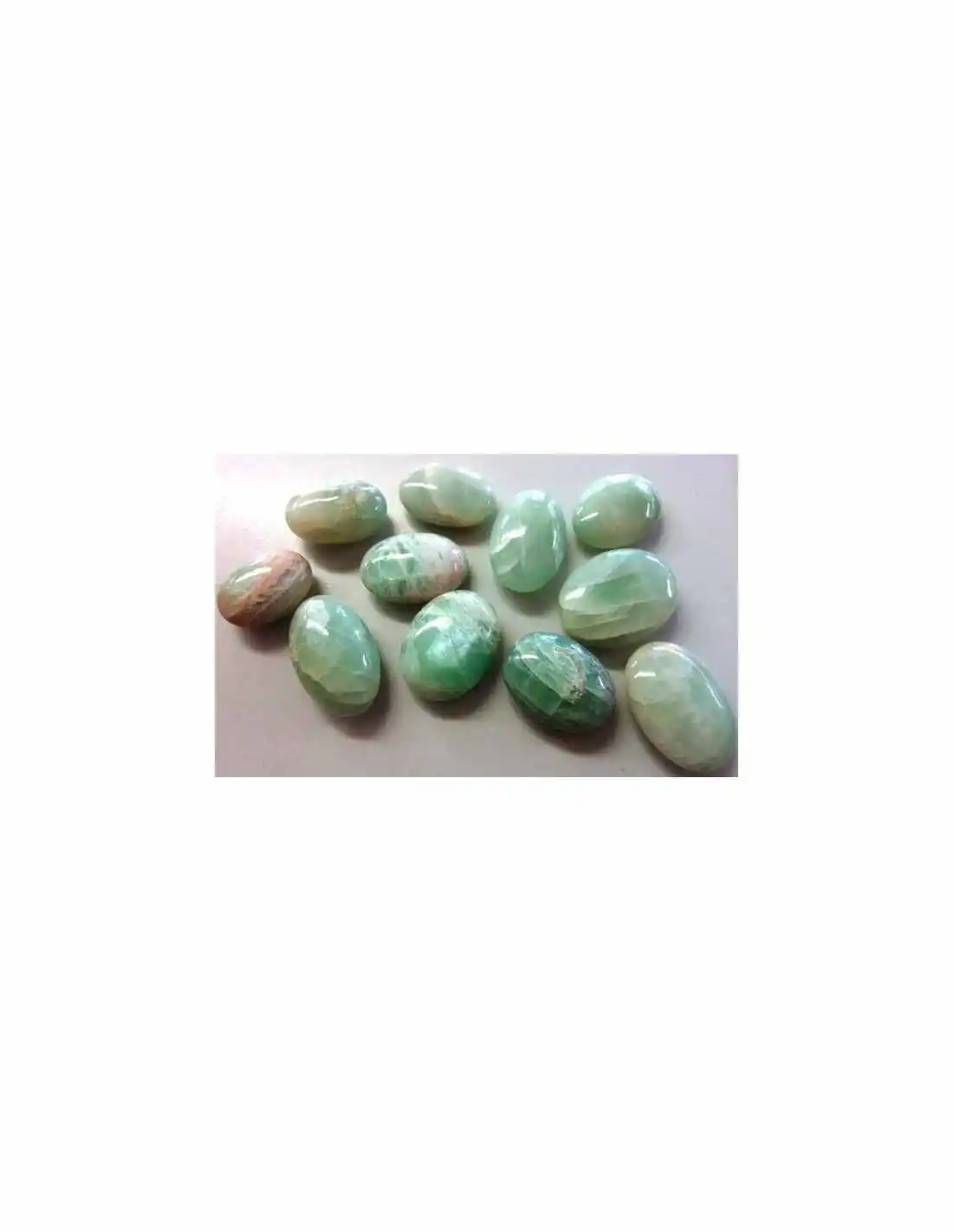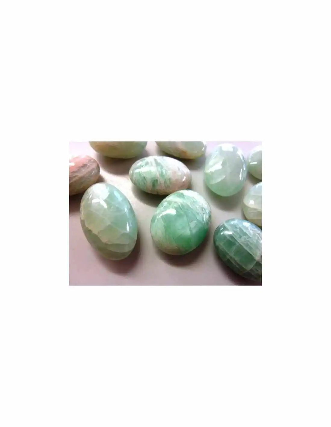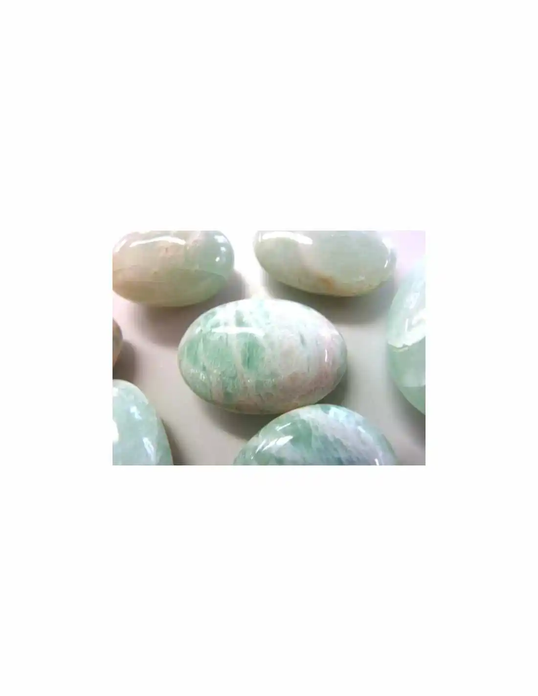 Pierre de lune verte galet. Longueur de 2,5 à 3,5cm, poids de 11 à 20g. Apaise les émotions, favorise l'état de guérison.